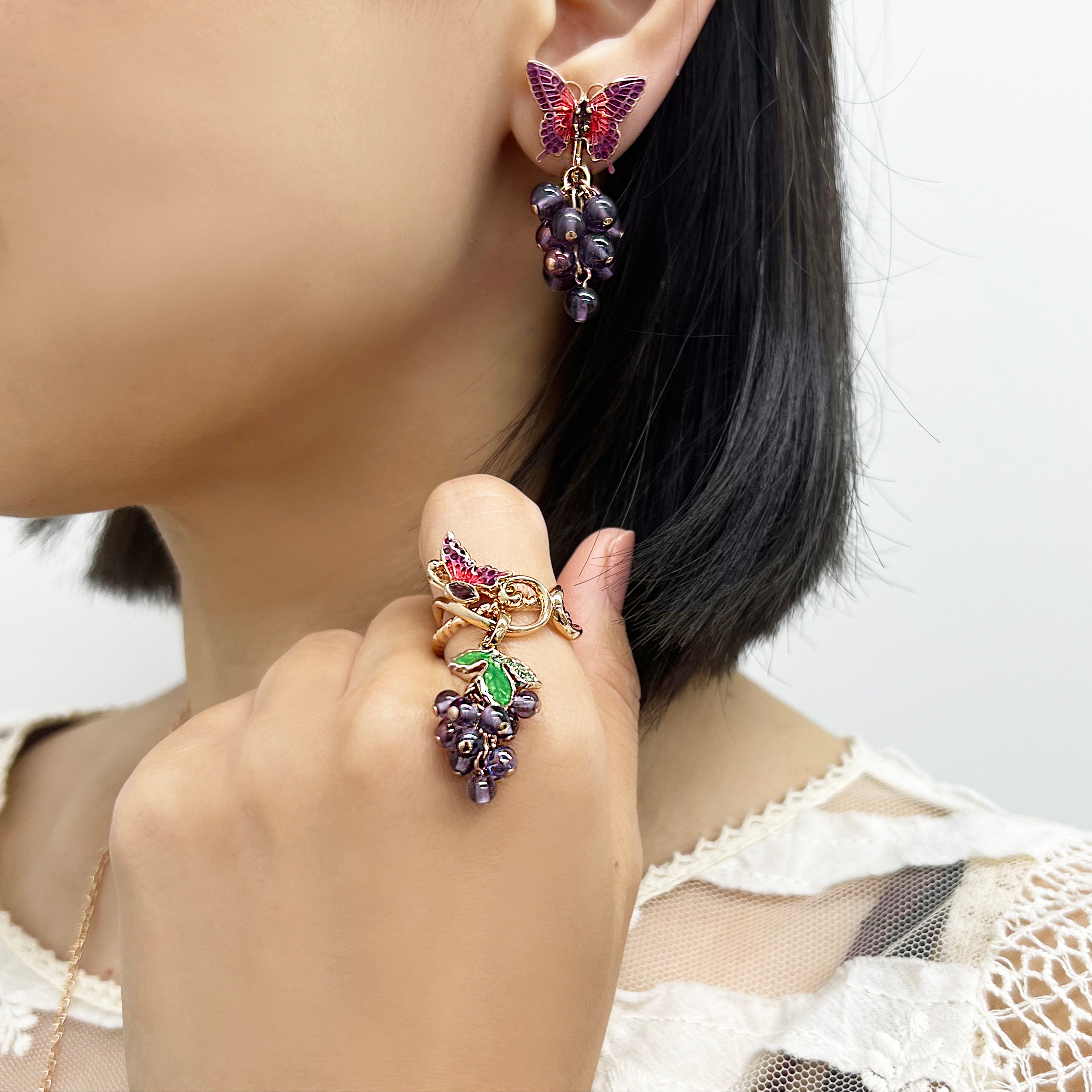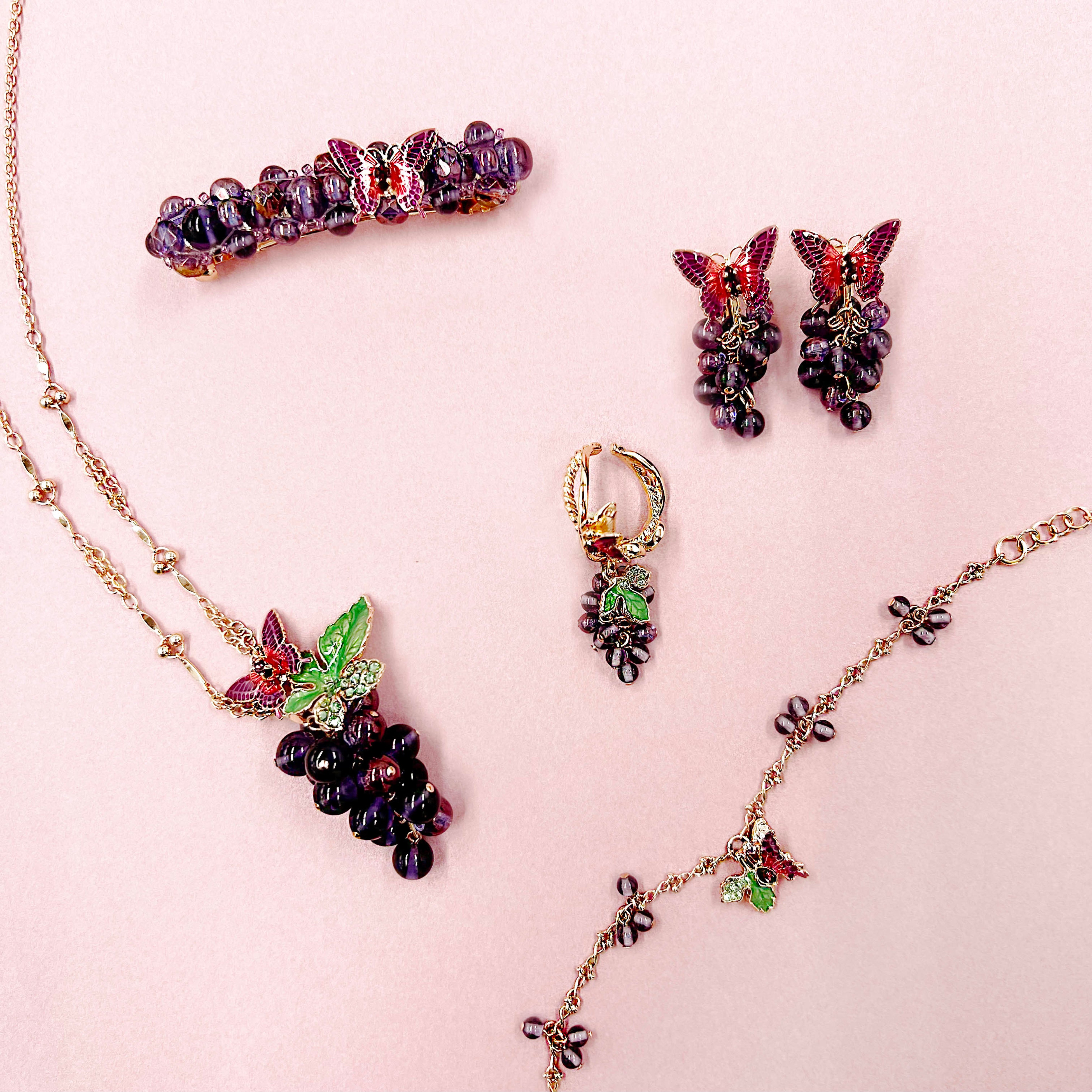 相反するテイストのミックスが魅力なアナ スイのアクセサリーより、ぶどうをモチーフにしたコレクションを発売します。