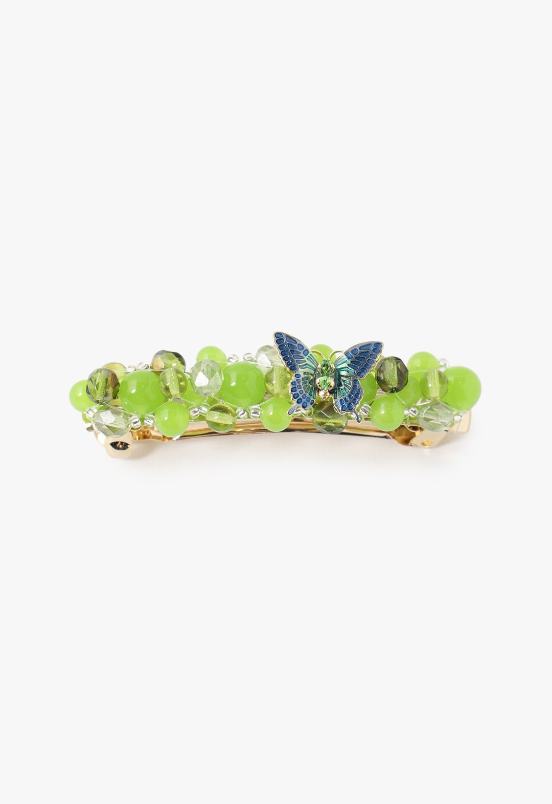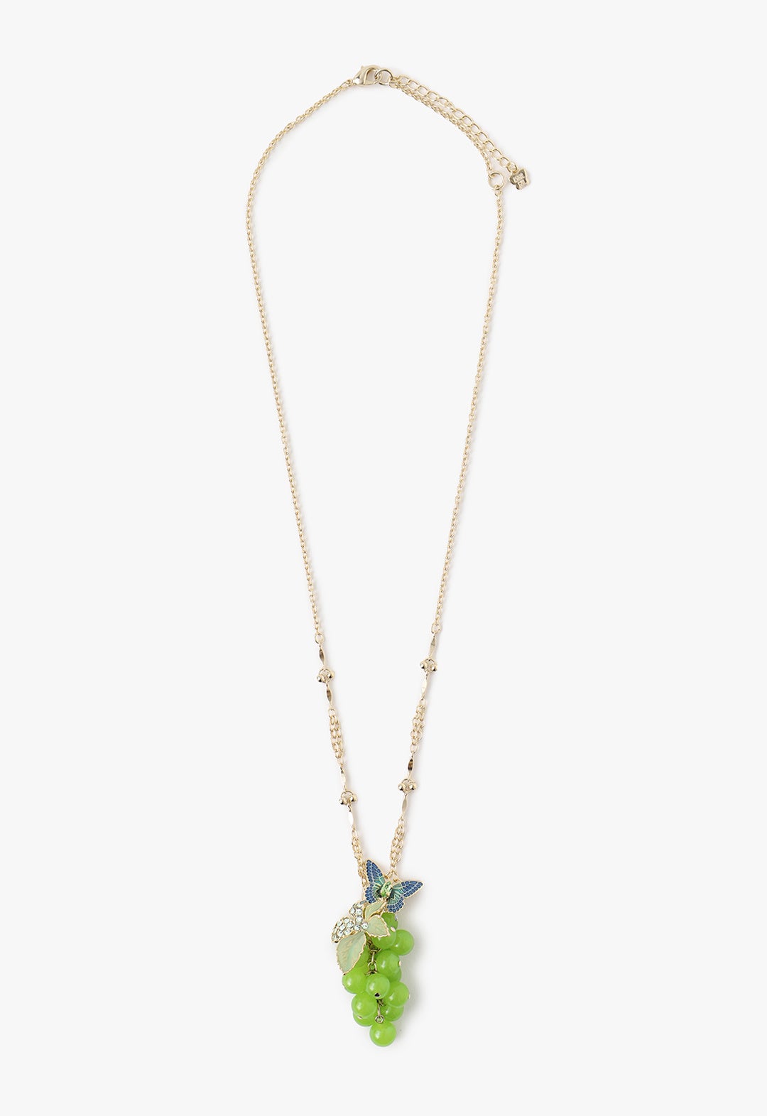 ぶどうの粒は職人が一つずつ針金を手曲げして組み立てていて、ヴィンテージコスチュームジュエリーを彷彿とさせるディテールです。