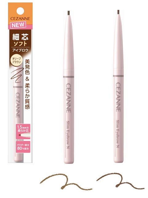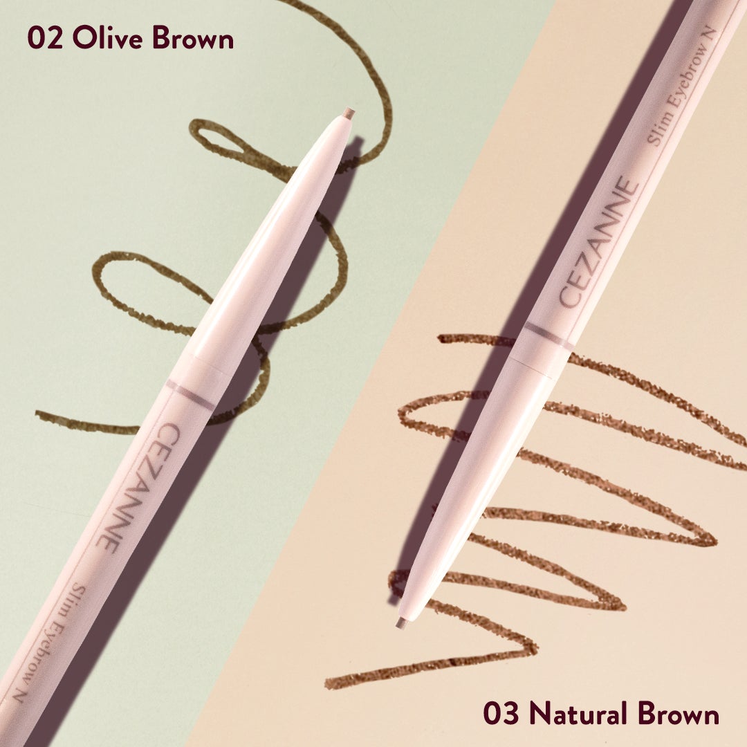 「セザンヌ 細芯アイブロウN」が新登場!パウダー成分を80%配合していて、ふんわりとした仕上がりのため、パウダー派にもぜひおすすめしたいアイテム。肌への密着力や発色にこだわっており、1.5mm芯で眉尻などの細かな部分の描きやすさも実現しました。カラー展開はベーシックな2色、「02 オリーブブラウン」と「03 ナチュラルブラウン」が登場します。