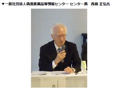 西島氏は医薬品の個人輸入問題に触れ、「一般の個人でも医薬品の輸入が可能となっているのは、外国で受けた薬物治療を継続する必要がある場合や、海外からの旅行者が常備薬として携行する場合などへの配慮によるものである」として、偽造医薬品等情報センターで受けた消費者からの健康被害に関する相談内容の一部を紹介いただきました。