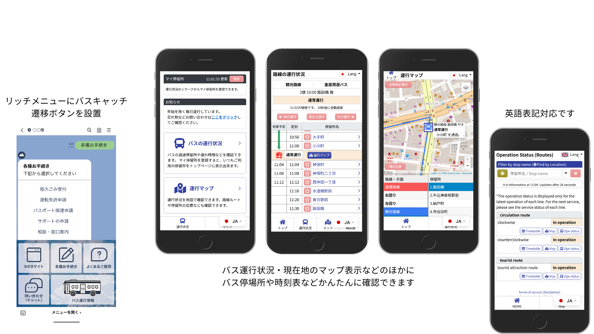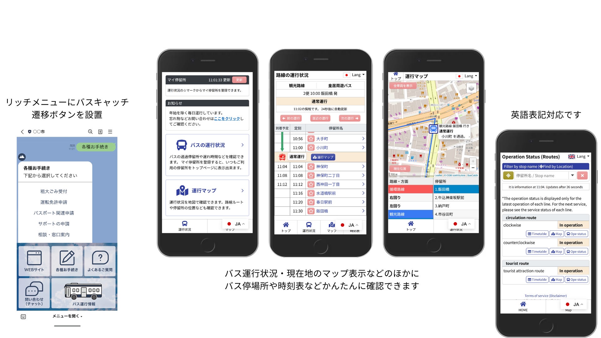 自治体にとっては、住民サービス向上に加え、問い合わせ対応の負担軽減や、災害・遅延時における迅速な情報確認といった効果も期待されます。