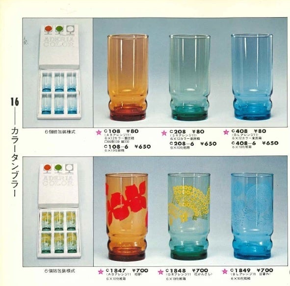 ぷっくりとした膨らみのあるフォルムでレトロ感たっぷりな形をした「アデリアアレンジ」は、昭和48(1973)年にアデリアが発売したグラスです。2020年に発売した「脚付きグラス」以来となる形状の復刻は、柄の復刻に比べコストも労力もかかります。ガラス原料を流し込む金型の再設計や、今までにはなかったグラス底面の“aマーク”の刻印まで復元するなど細部までこだわり、発案から発売までに通常の約2倍もの時間を要しました。くびれがあり持ちやすく、普段使いにちょうど良いかわいらしさもあり、アデリアレトロのコンセプト“今のライフスタイルでも使いやすい”にふさわしく、現代でもファンの多いこのコップを復刻いたしました。