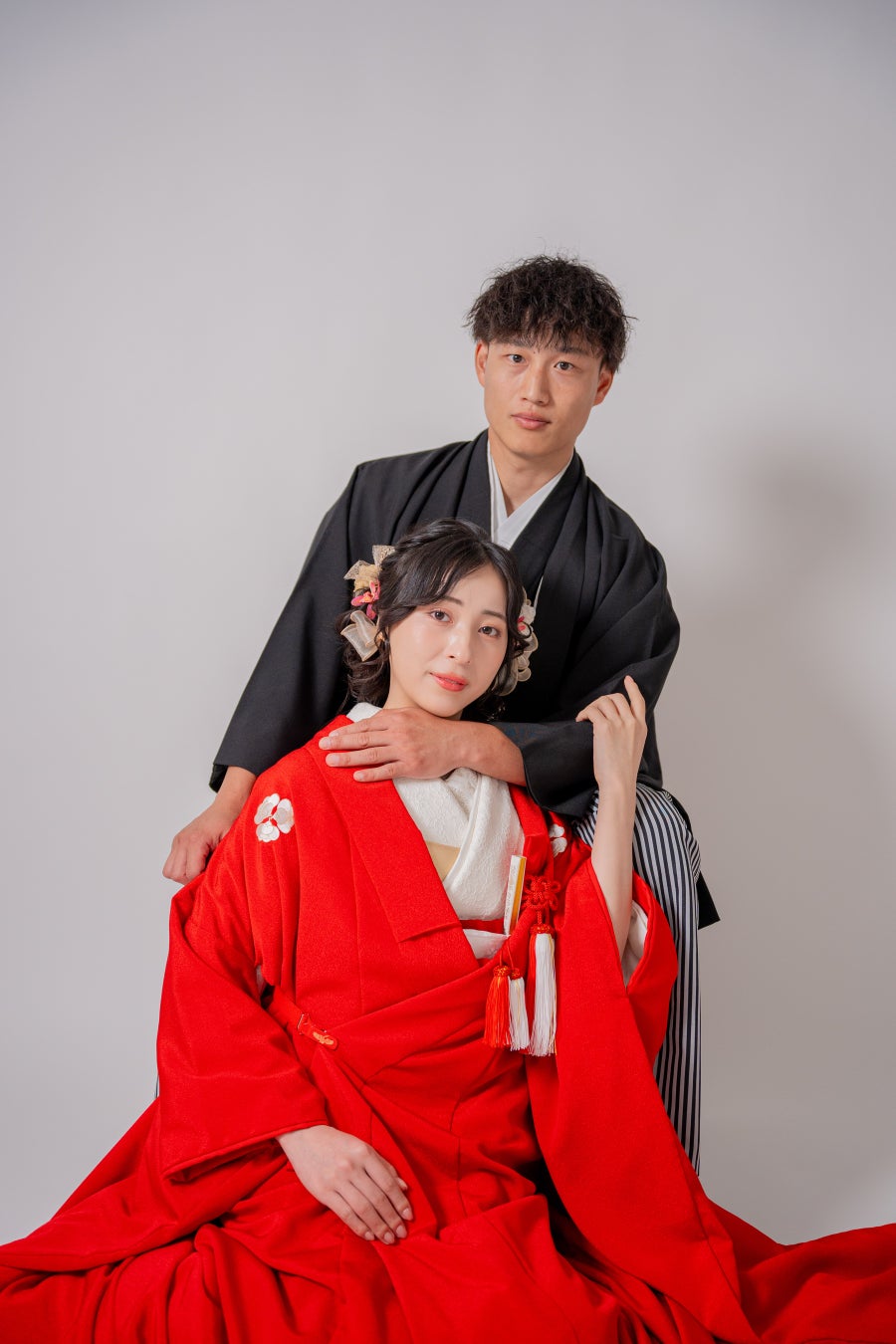 2着撮りにも対応:白無垢+赤無垢のコントラストで“凛”と“艶”の両方を残す撮影が可能。