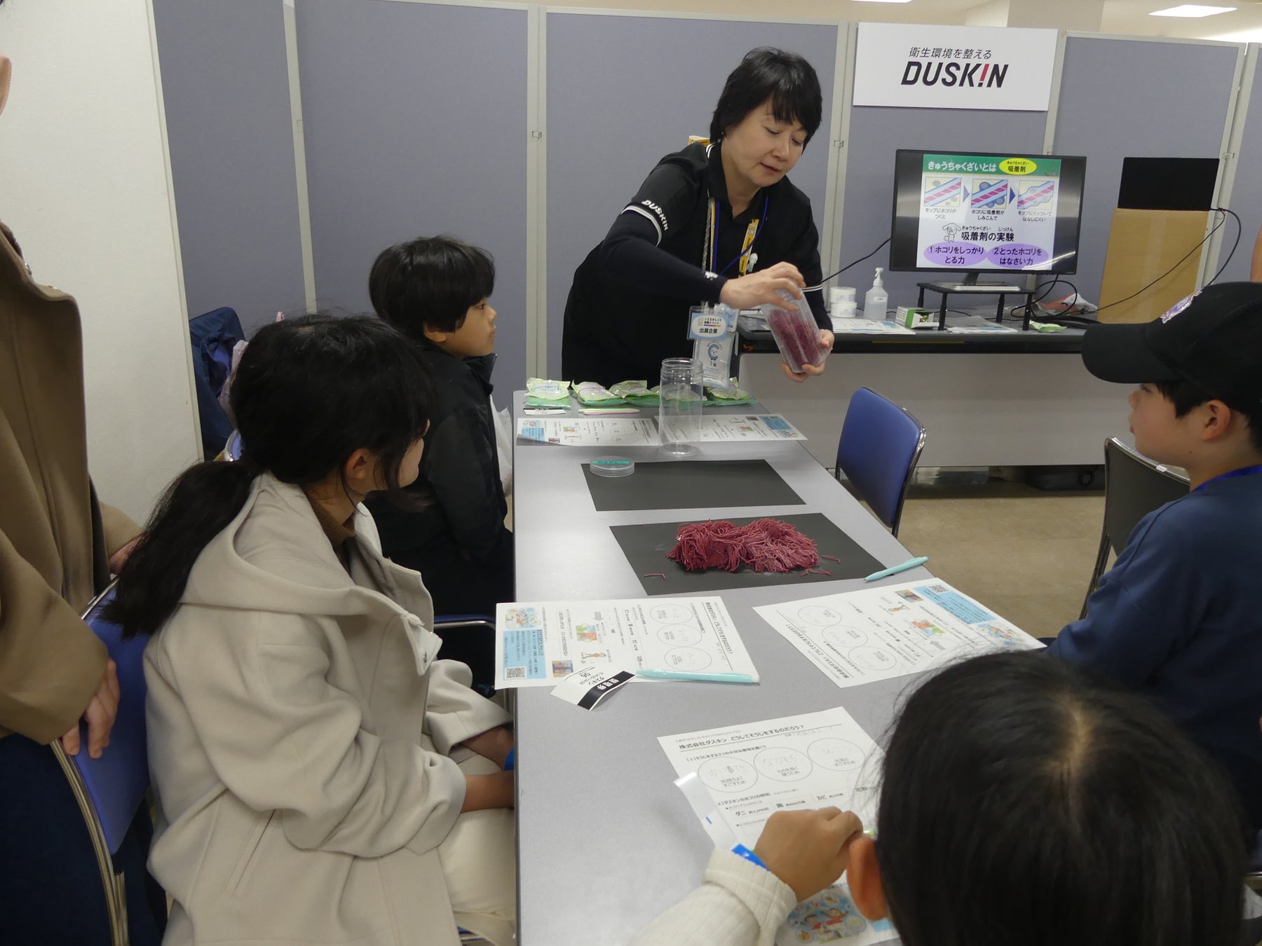 当イベントは三原市において昨年度から行われている「こどもおしごとチャレンジ」の取り組みの一環として、広い視野で様々な業界・仕事・社会を知る学びと体験の機会を創出することを目的として開催され、当日は400名(うち子ども184名)が来場。業界の垣根を越えて参加いただいた12の企業・団体の体験ブースでは、仕事や製品・技術の紹介、環境配慮への取組など趣向を凝らした内容の講義・セミナーやワークショップが開催され、子どもたちが笑顔で楽しそうに参加している光景が見られました。