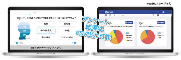 取得したアンケート結果はCSV出力も可能です。動画から取得した定量的なデータを事業にご活用いただけます。