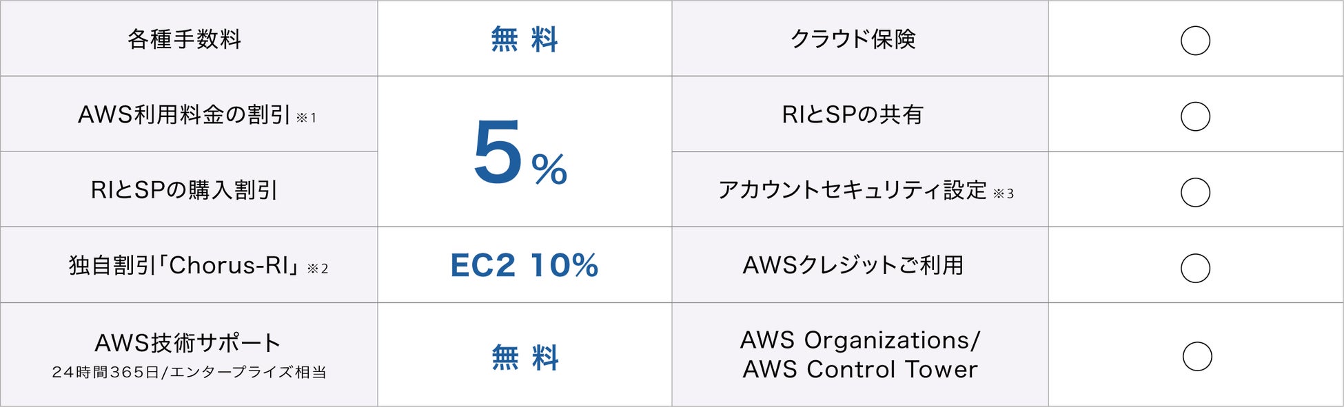 ①AWS 利用料金が一律5%割引、24時間技術サポートが無料