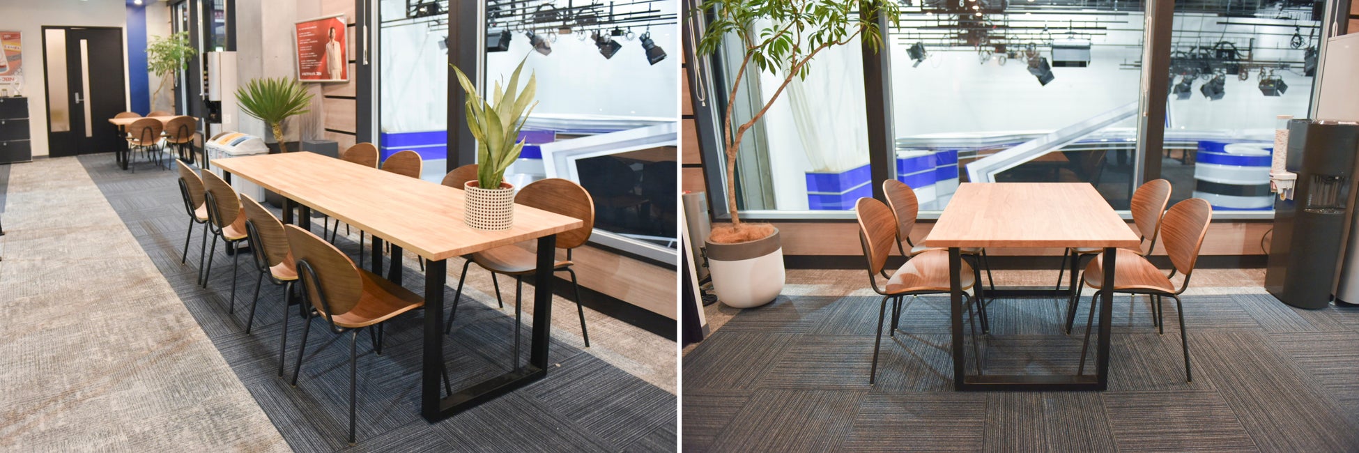 さらに2階フロアにも、THE TABLEとチェアの組み合わせを導入。報道スタッフやキャスター同士がミーティングスペースとして活用できるような、オープンで居心地のよい空間となっています。