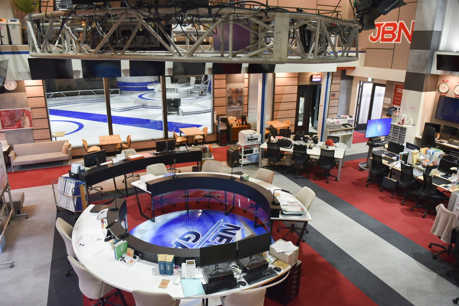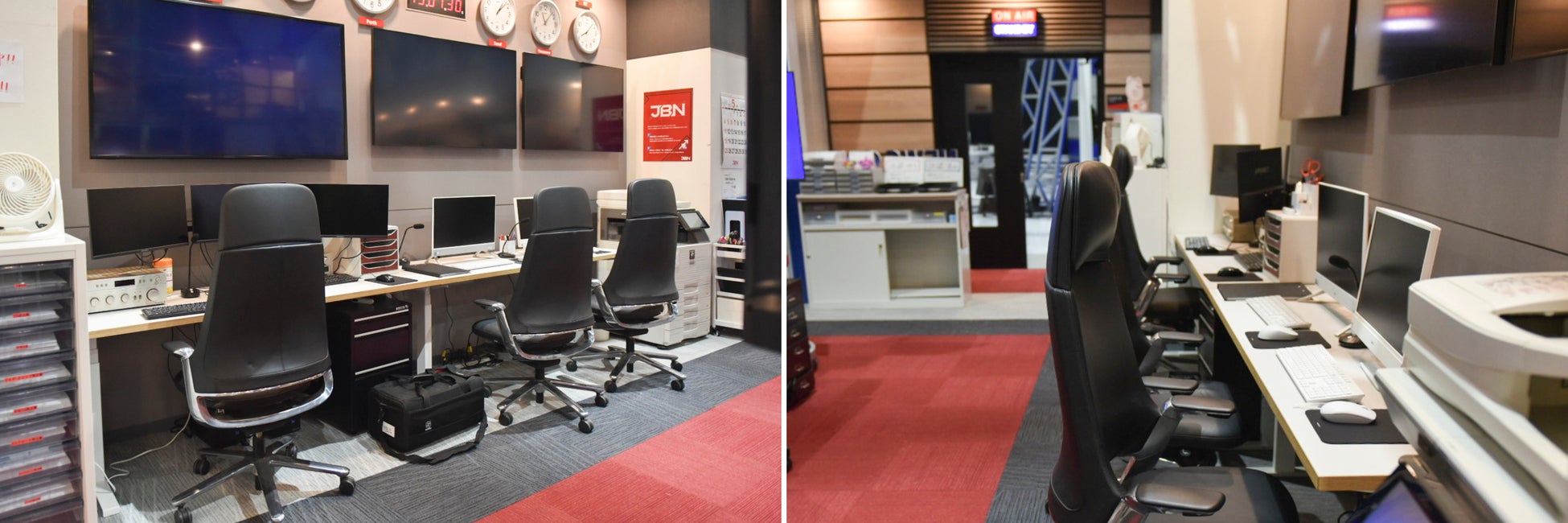 物語の舞台となる民放テレビ局JBNの報道番組『ニュースゲート』の報道フロアに、KANADEMONOのデスクやチェアを多数導入いただきました。