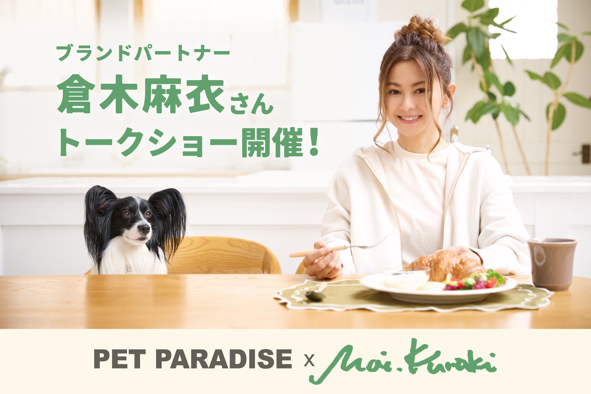 5月24日(土)14時からMARK IS みなとみらい 1F グランドガレリア 特設ステージにて、ブランドパートナーである倉木麻衣さんと愛犬ベニート君を迎えてトークショーを開催します。倉木さんとベニート君のライフスタイルや、『ペットパラダイス』との取り組み、コラボ商品に関するお話や今回のチャリティーに関してのお話しなどを、映像を交えてお伺いします。