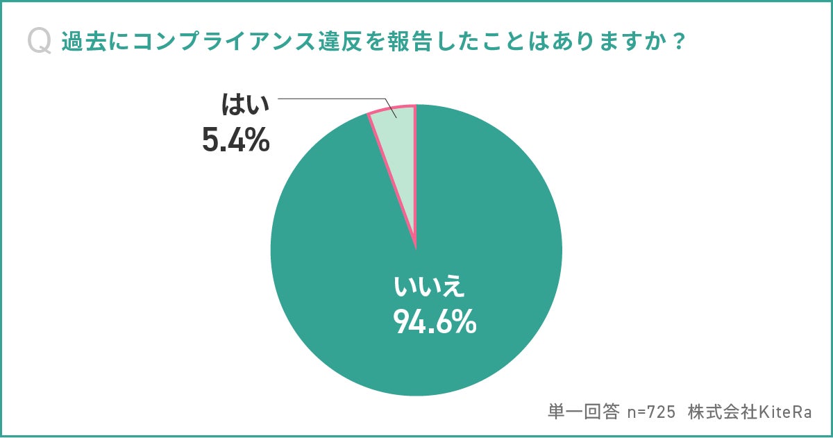 コンプライアンス違反の報告経験者はわずか5.4%、9割以上が「いいえ」と回答