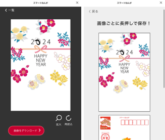 ※画像ダウンロードができるのは今年度の年賀状のみです。昨年度以前の年賀状はダウンロードできません。