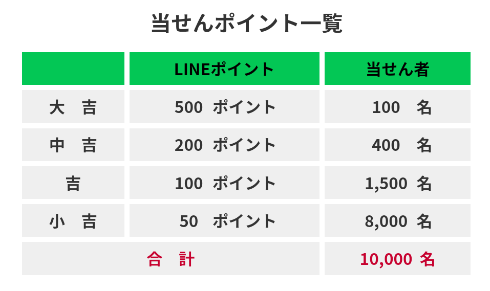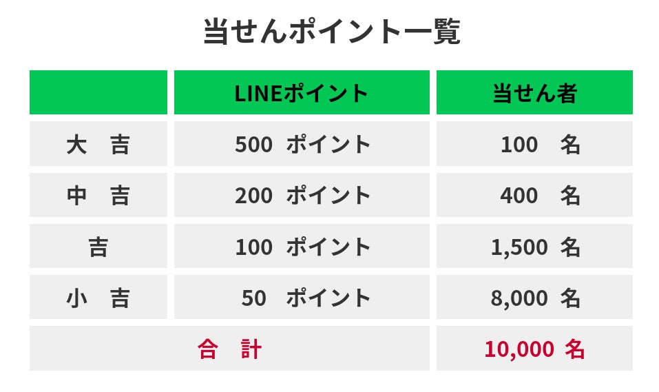抽せん結果の確認、LINEポイントの受け取りは2024年1月16日(火)から1月26日(金)23:59までです。