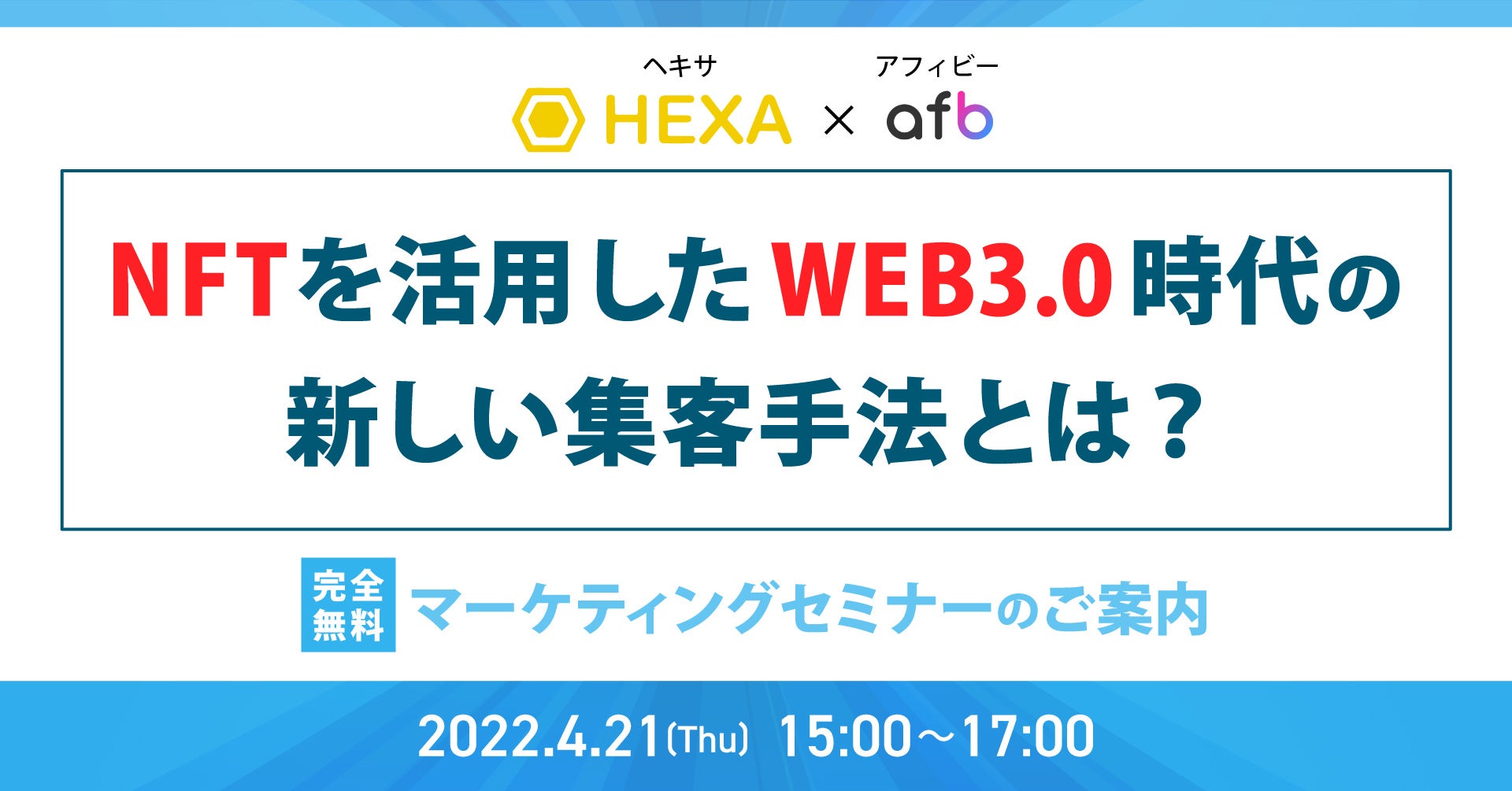 NFTを活用したWEB3.0時代の新しい集客方法とは?HEXA(ヘキサ)× afb(アフィビー)の完全無料ウェビナーが開催決定!