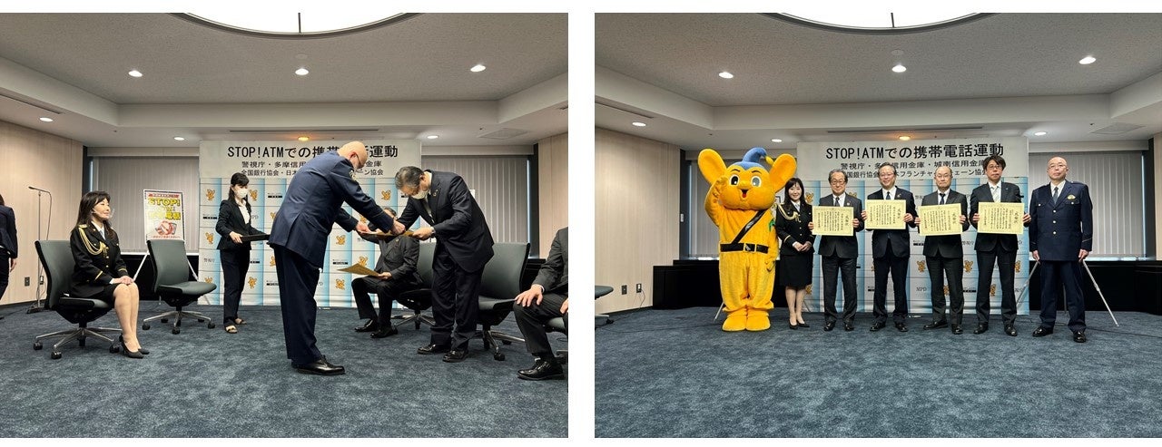 これを聞いた山本副総監は、「詐欺に遭う方は頭が真っ白になって、訳も分からずATMの操作をしてしまうので、声掛けは非常に効果的です。特殊詐欺の犯人にとってリスクが少ないのがATMでの還付金詐欺であるため、このような被害を撲滅できるように『ストップ!ATMでの携帯電話』運動を強化していきますので、皆様のご協力をお願いいたします。」と述べました。