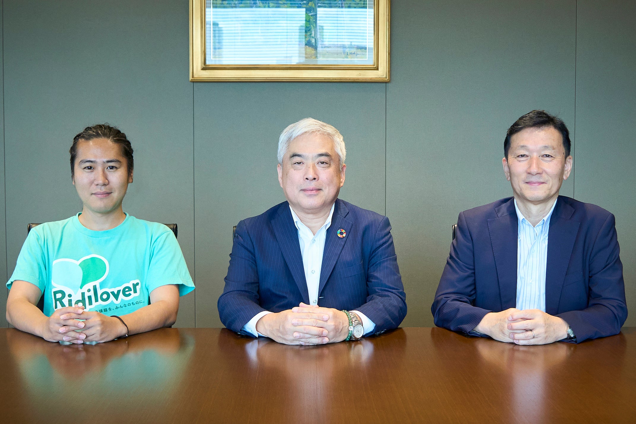 (写真)アニュアルレポート内「ファンドに携わる3社の対話」、出席者一同(左から、リディラバ代表取締役・安部敏樹、かんぽ生命常務執行役・春名貴之氏、コモンズ投信代表取締役社長・伊井哲朗氏)