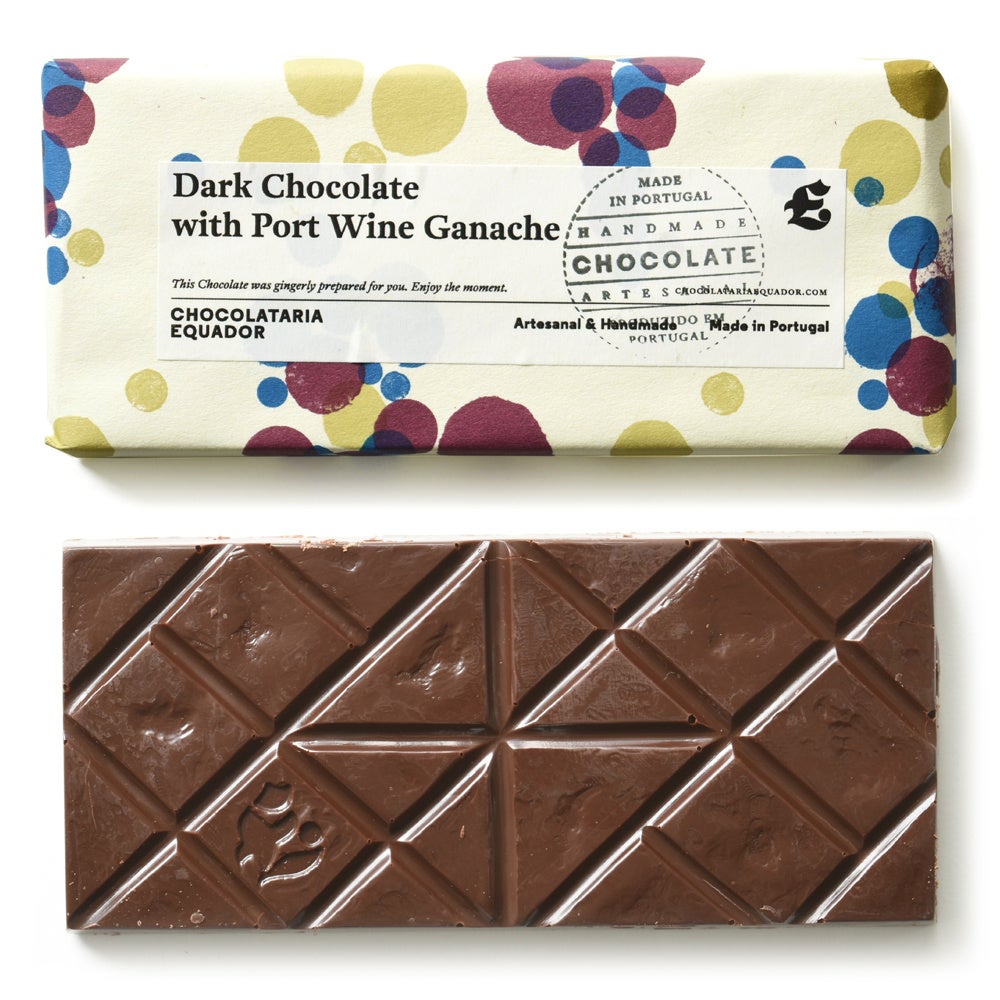 ダークチョコレートの板チョコに、薄くポートワインのガナッシュが詰まったポルトガルらしい1枚。タブレットのベースは60%のダークチョコレートで、⾚ワインの濃厚な味わいを楽しめる、背伸びしたいときおすすめな⼤⼈のチョコレートです。