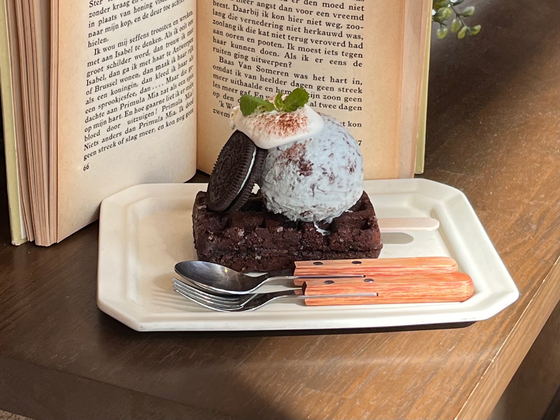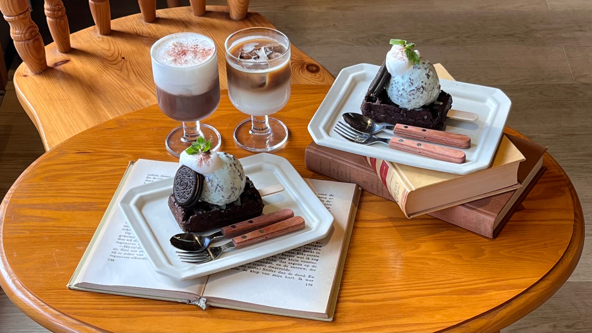 ココアパウダーを練り込んだワッフルプレートはkyocafe chacha史上初です。