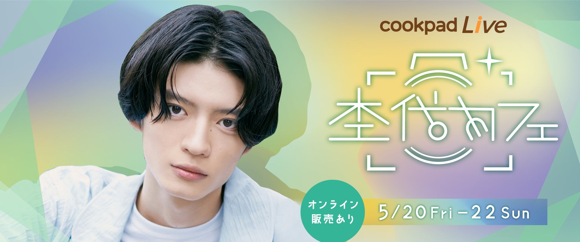 オーナーシェフである杢代さんが自ら料理の腕前を披露するスペシャルなイベントの開催も決定!5月20日(金)、5月21日(土)には、キッチンスタジオで杢代さんがcookpadLiveの特別配信を行う姿を観覧しながら食事を楽しめるプラチナLiveを実施します。いつもは画面越しに観ている杢代さんが目の前で料理を作り、一緒にゴハンを食べる推しゴハン体験を存分にお楽しみください。