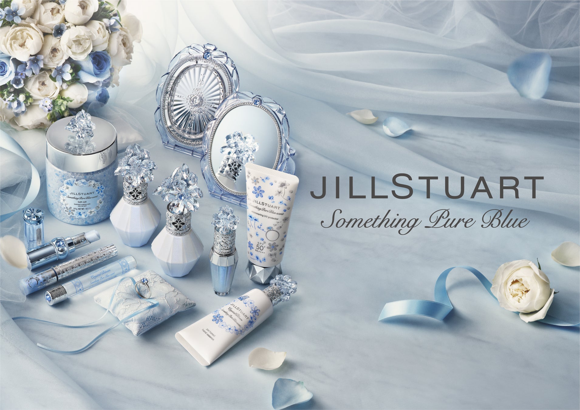 『ジルスチュアート ビューティ』は4月28日(金)より、サムシングピュアブルーコレクションを限定発売いたします。今年は、永遠の幸せをもたらすブルーダイヤモンドの指輪をテーマに、フレグランスのほか、新たなアイテムとしてバスソルト、人気のアイカラー&アイライナー、リップ美容液の限定の香りやコンパクトミラーなどを展開します。