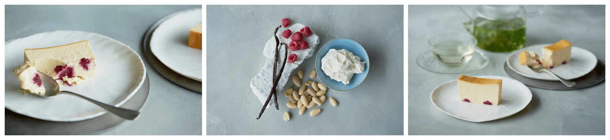 レストランデザートのような濃厚かつ儚い口溶けと、バニラ・レモン・トンカ豆が生み出す、甘く爽やかな香りが特長で、温度によって変化する味わいと香りを楽しめるチーズケーキです。