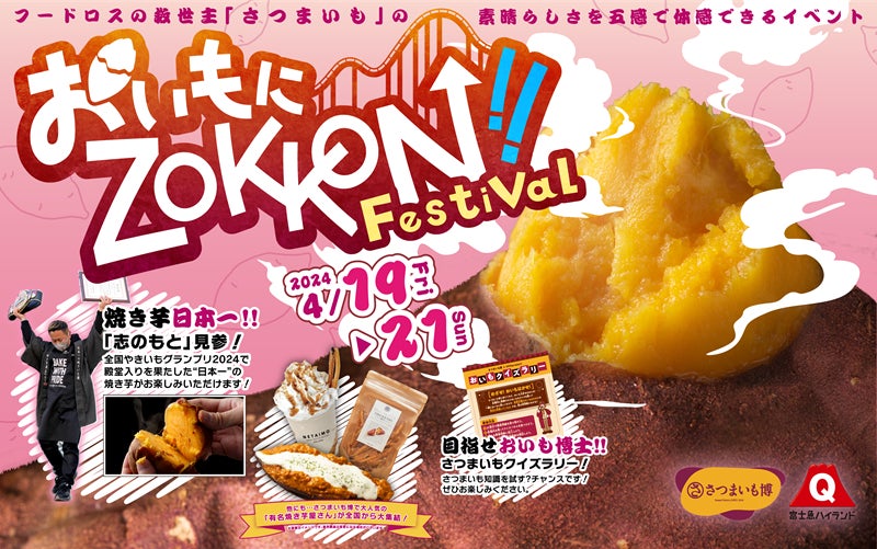 さつまいも博実⾏委員会(実行委員長:石原 健司、東京都新宿区西新宿7-7-26)は、来たる2024年4月19日(金)~21日(日)に富士急ハイランド(山梨県富士吉田市)にて、富士急行株式会社・株式会社富士急ハイランド主催イベント「おいもにZOKKON!! Festival」をコラボ開催することが決定しましたので、お知らせいたします。