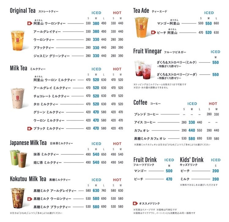 4月1日よりメニュー拡充&価格改定。お手軽な「Sサイズ」「タロ ミルクティー」が復活!