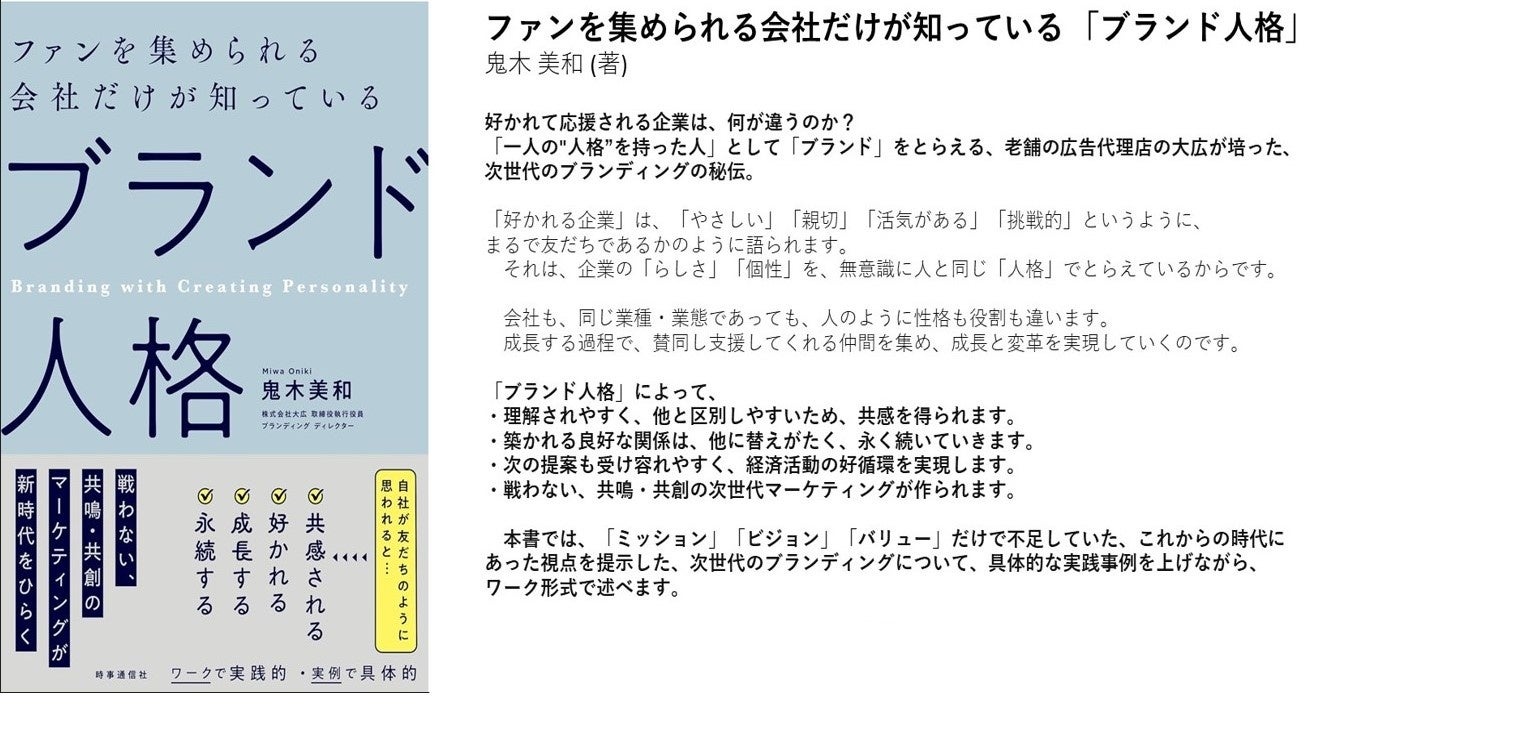 変化の時代、企業が成長と変革を続けるには、何が必要なのでしょうか。実は、企業も事業も商品も、一人の〈人格〉として捉えた時に次世代を拓く力を見出すことができるのです。「好かれて共感される企業」は、「やさしい」「親切」「活気がある」「挑戦的」というように、まるで友だちであるかのように語られます。それは、企業の「らしさ」「個性」を、無意識に人と同じ「人格」でとらえているからです。会社も、同じ業種・業態であっても、人のように性格も役割も違います。成長する過程で、賛同し支援してくれる仲間を集め、成長と変革を実現していくのです。