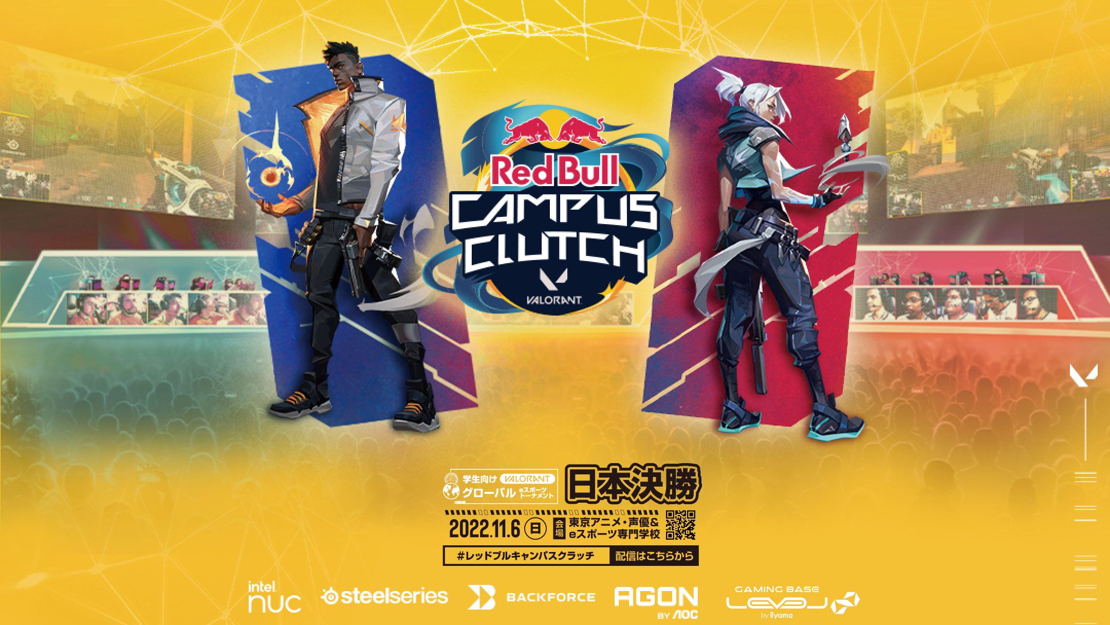 レッドブルは、学生向け『VALORANT』グローバルeスポーツトーナメント「Red Bull Campus Clutch」の2シーズン目を開催中です。今年12月にブラジルのサンパウロで開催予定のワールドファイナルで優勝すると、賞金2万ユーロの他、2023年のVALORANT Champions TourイベントでのVIP体験が得られます。ワールドファイナルには国別予選を勝ち抜いた世界50カ国以上の代表チームが出場を予定し、これに出場する日本代表チームを決める日本決勝を11月6日(日)に東京アニメ・声優& eスポーツ専門学校(東京都江戸川区)で開催します。大会の様子はTwitchのRed Bull Japan チャンネルで生配信します。