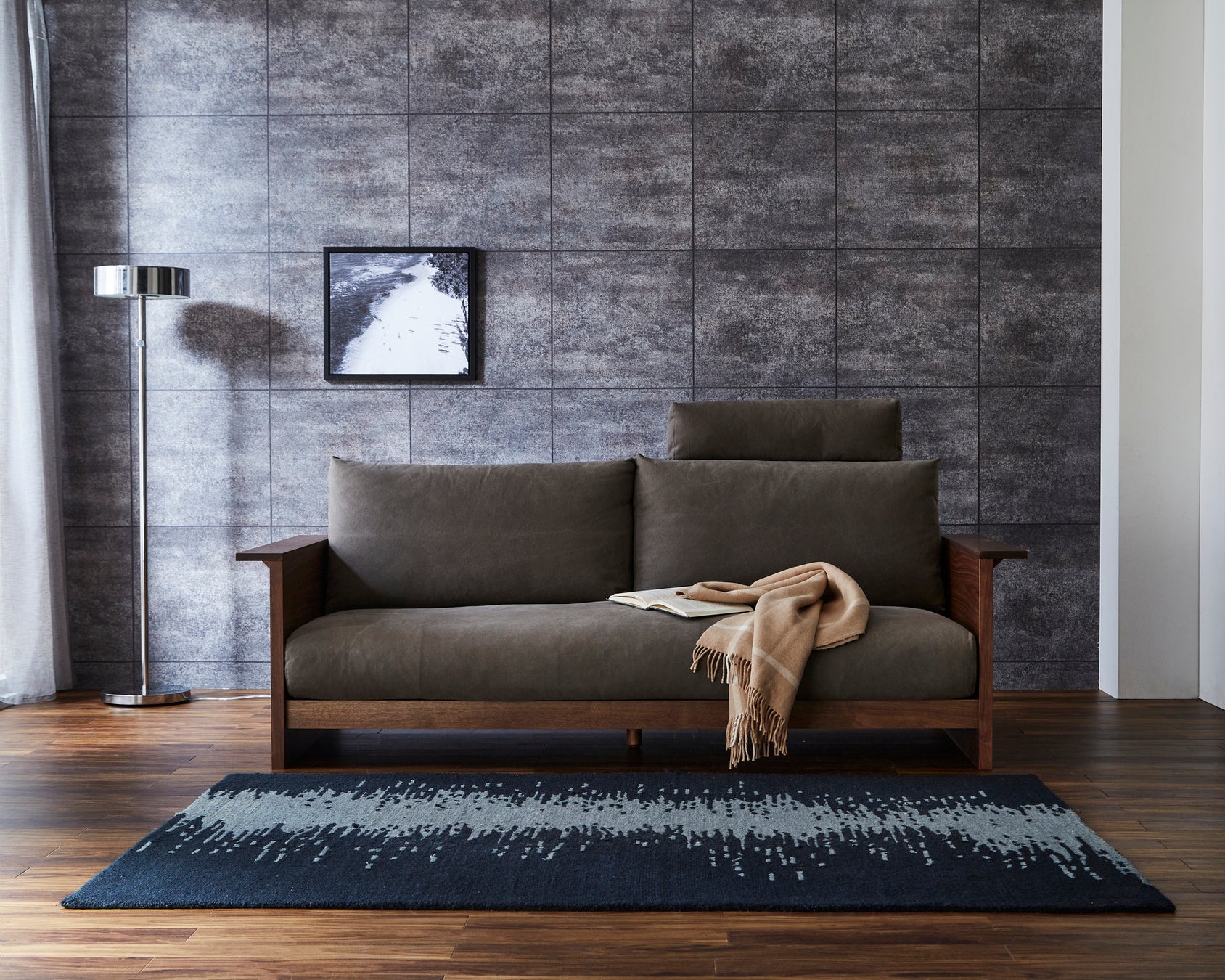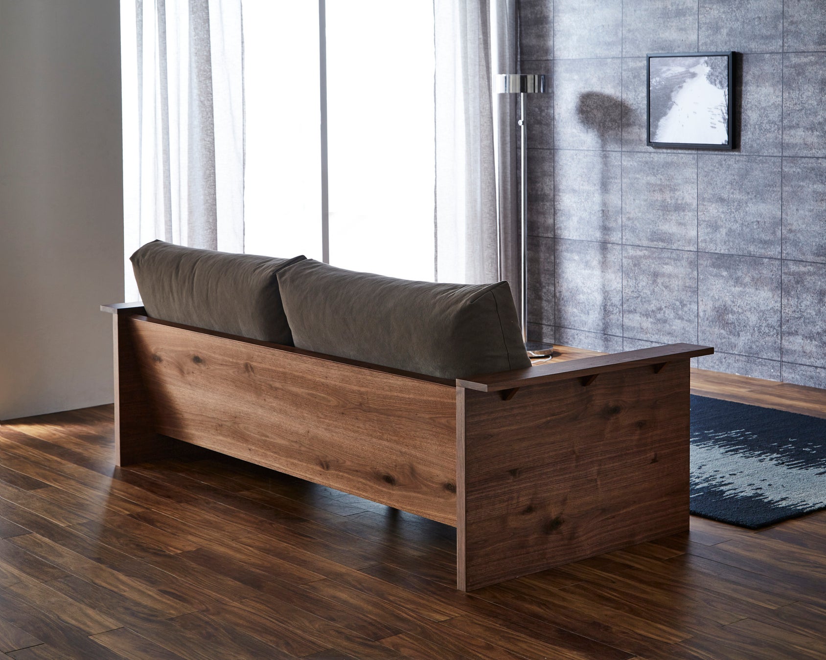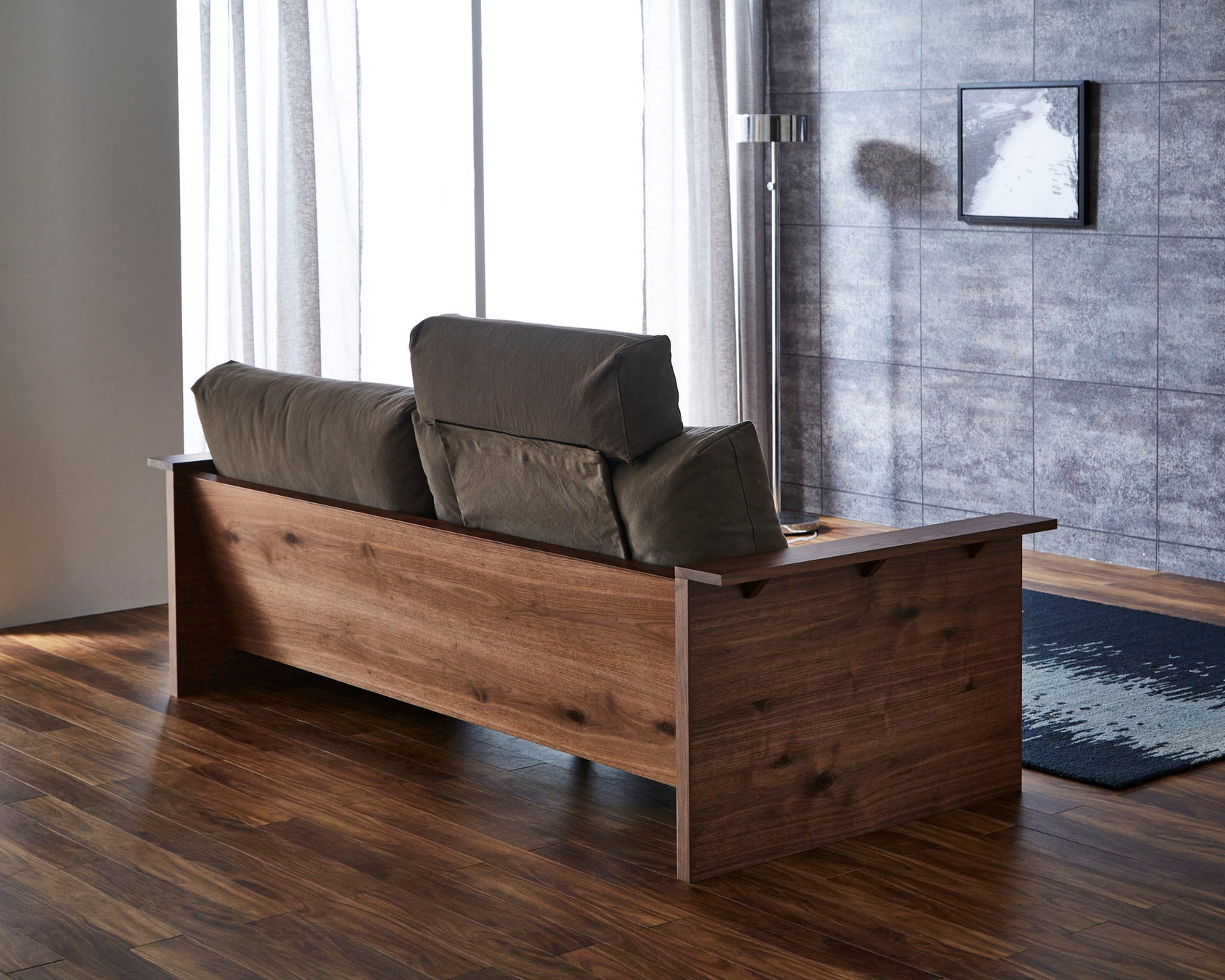 ジムシリーズは、ニッポネアが得意とする国産工場の粋を集めて制作したモデルです。張地は岡山県倉敷、クッション内部は大分県日田、フレームは福岡県大川と複数の家具産地をつなぎ生産しています。フレームの素材は、ブラックウォールナット、ホワイトオークという希少な高級材をもちいています。サイズは、200センチ幅の3Pと2190センチ幅の3.5Pの2サイズから選ぶことができます。