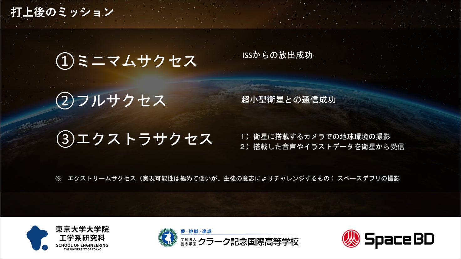ついては2023年11月27日(月)に打ち上げ報告会をオンラインにて実施する運びとなりました。本報告会では打ち上げまでの経緯を含む、今後の運用、本プロジェクトの宇宙教育に関する教育成果をご報告いたします。