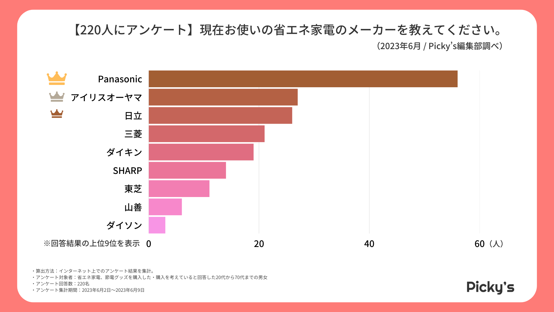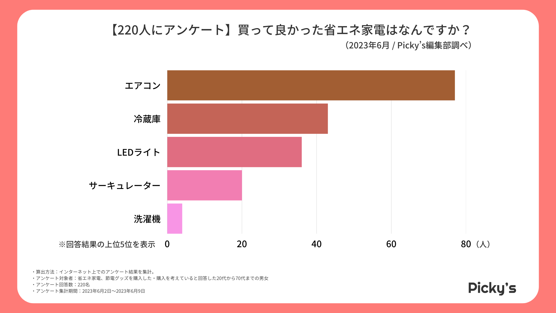 「Picky’s」は、インターネットショッピングにおいて、購入前に試せない・選ぶべきものがわからないという課題の解決を目標に、あらゆる商品のおすすめランキングや検証レビューを紹介するサイトです。このたびPicky’s(https://rentry.jp/note/)では、省エネ家電、節電グッズについてインターネット上でアンケート調査を行いましたので発表いたします。