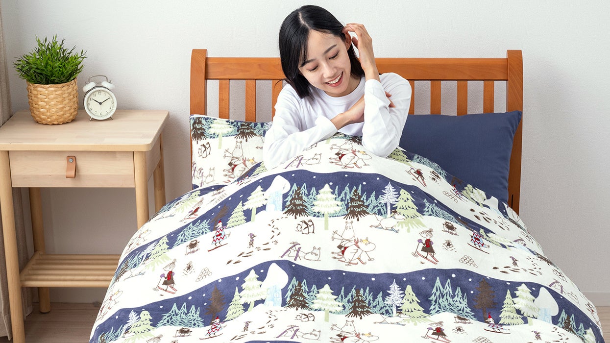 かわいいムーミン柄のあったか掛けカバー、フランネル素材の柔らかな肌触りと暖かさ◎