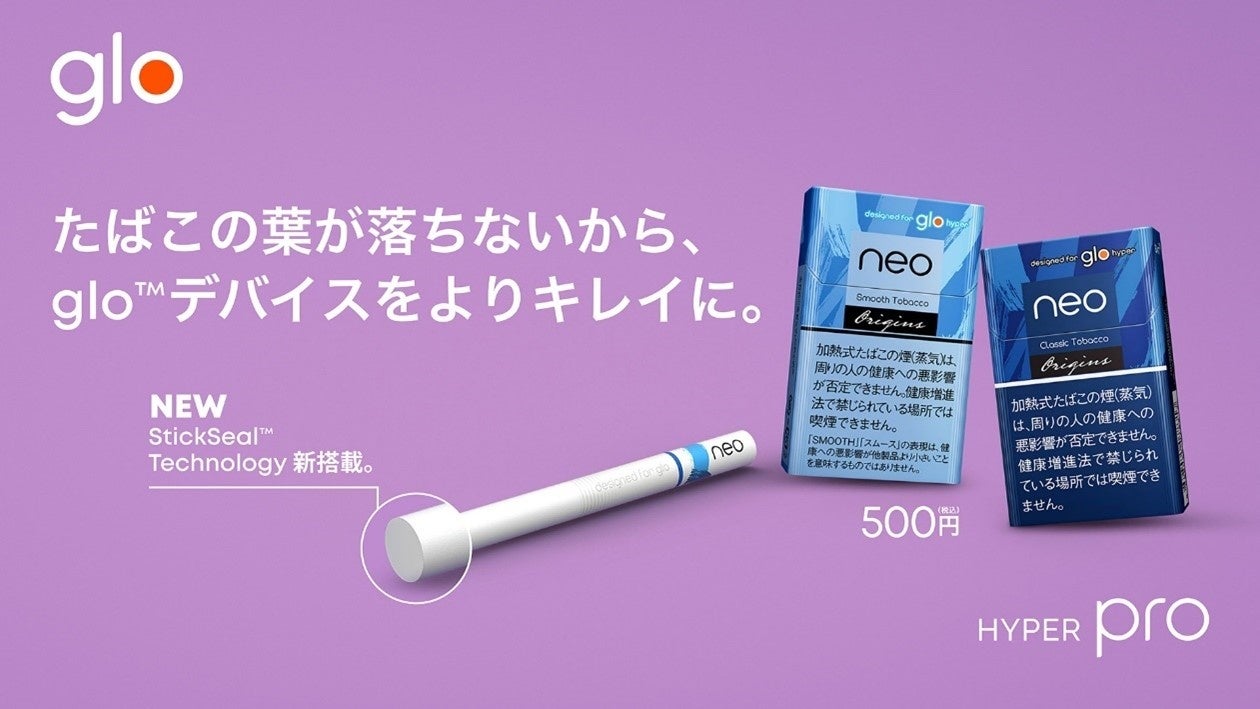 デバイス内にたばこ葉が落ちない新技術「StickSeal™テクノロジー」を加熱式たばこglo™用スティックneo™全8銘柄に搭載