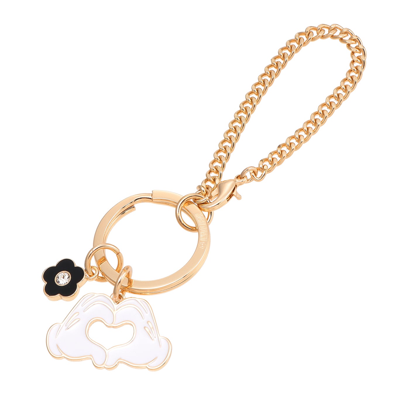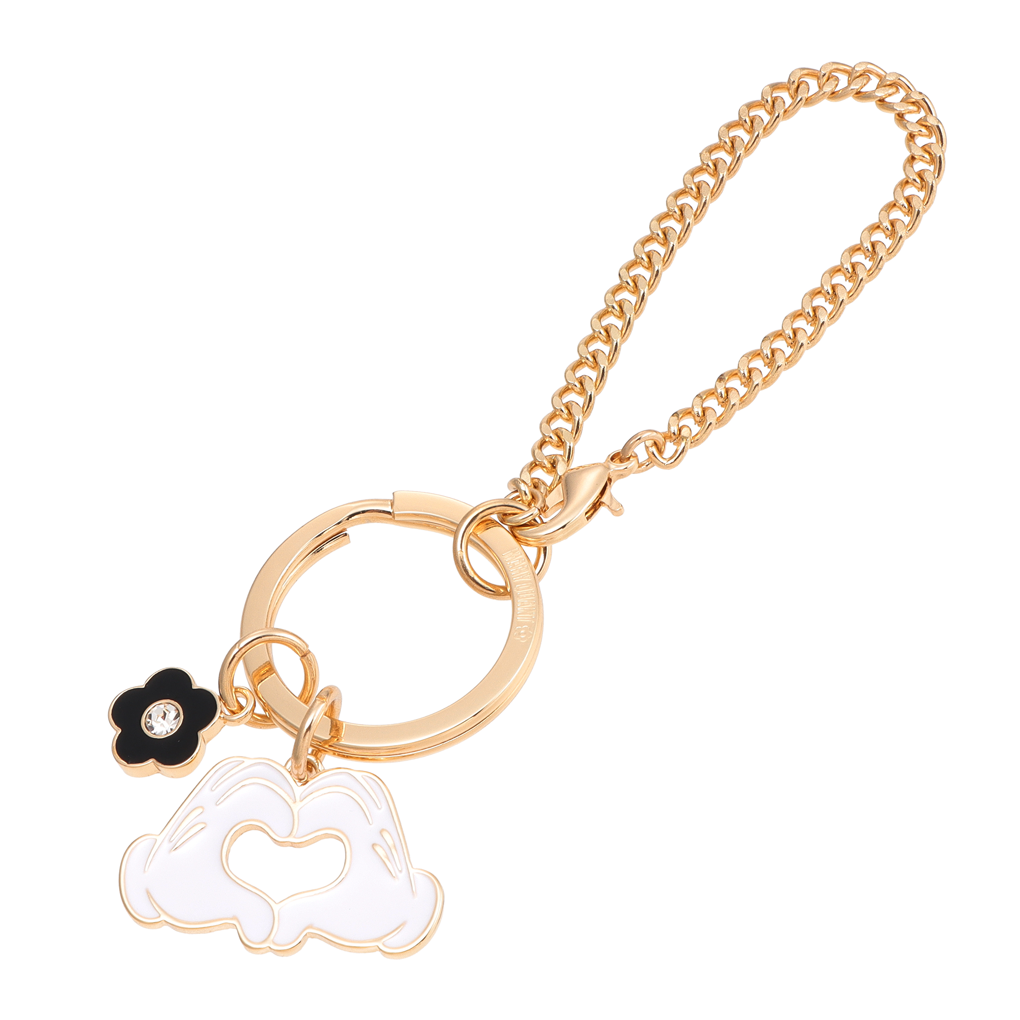 ハートのハンドサインパッチがついたデザインが使うたびに気分を上げてくれるはず♡デイジーがついたチェーンストラップがポイント。