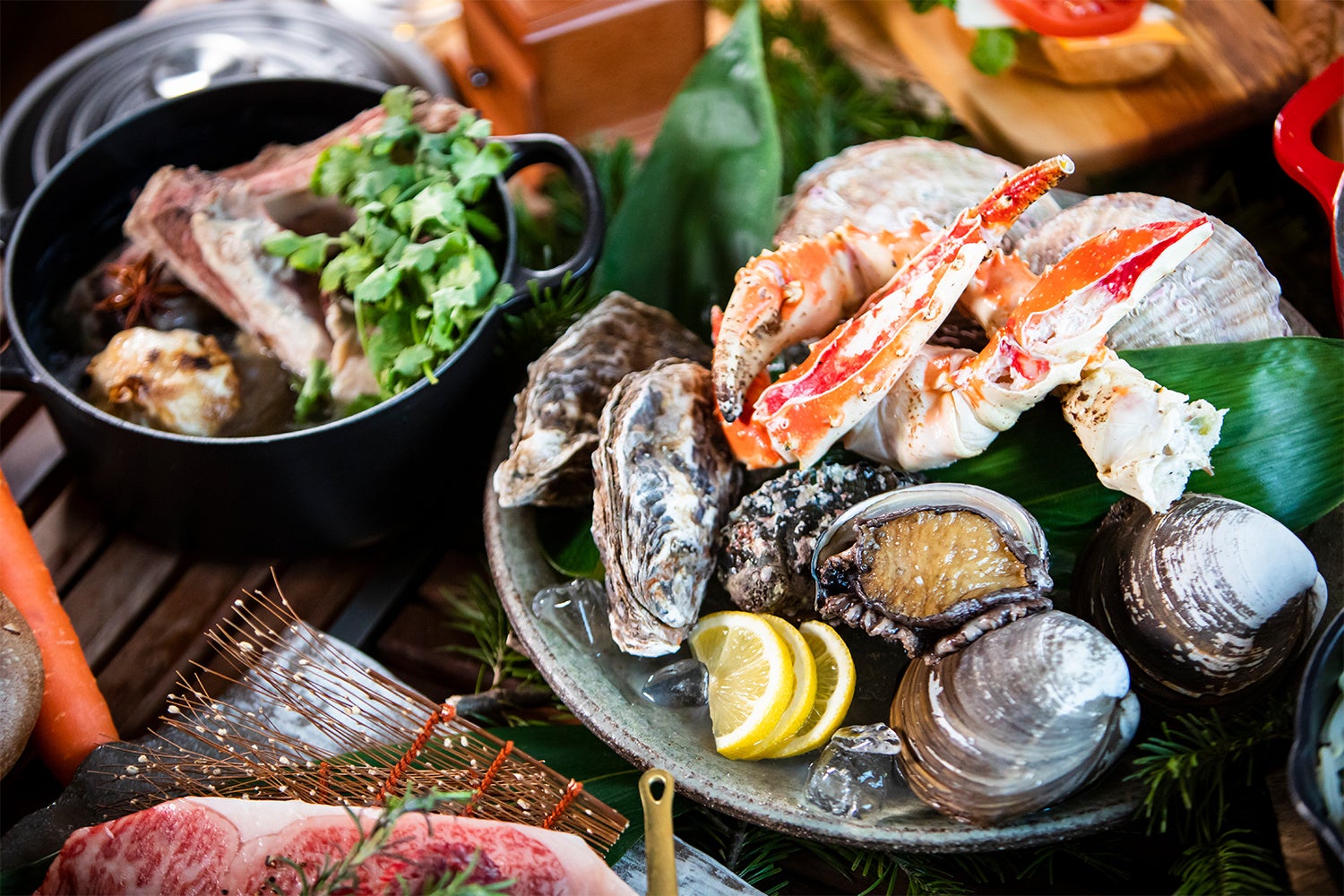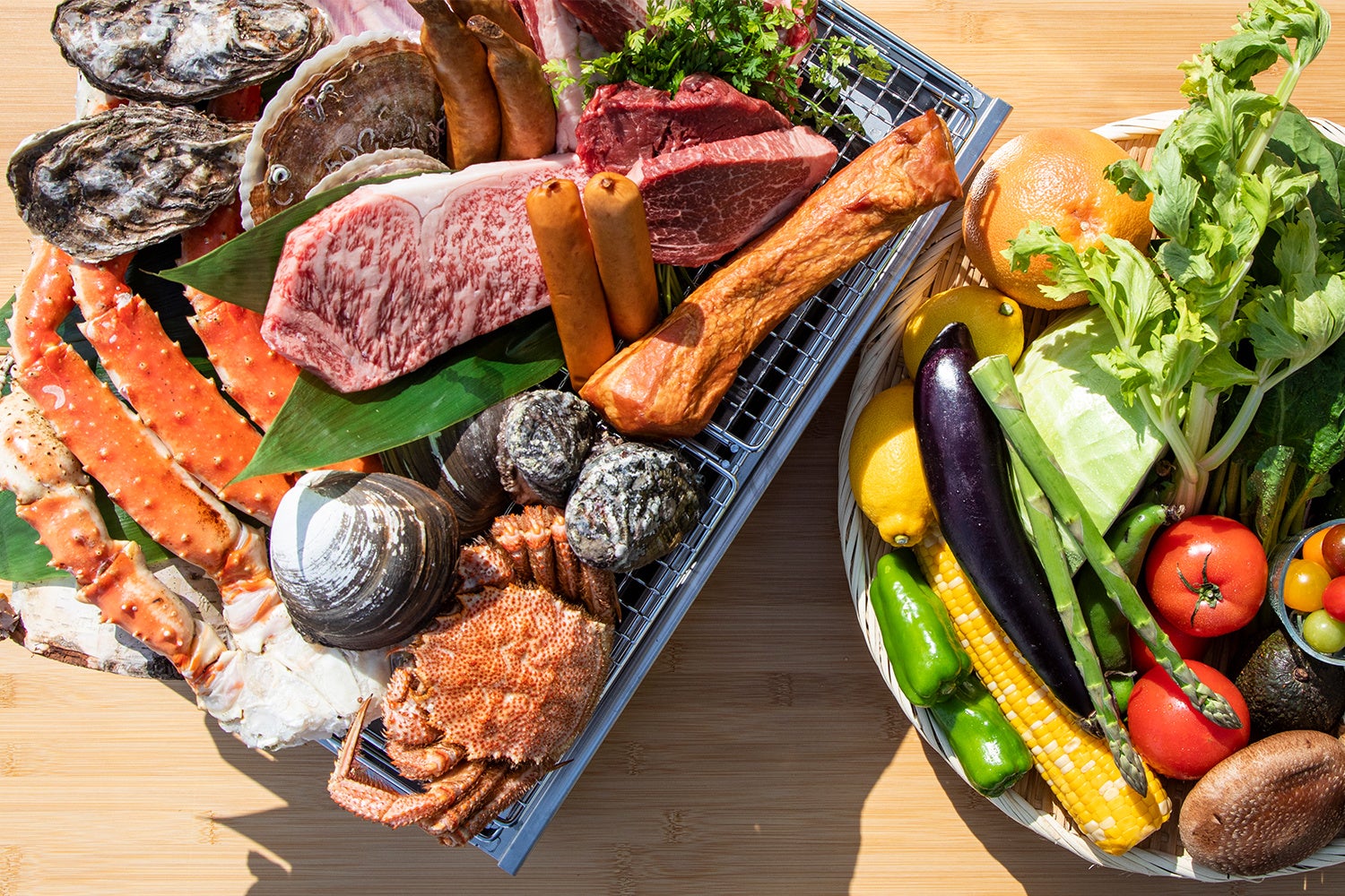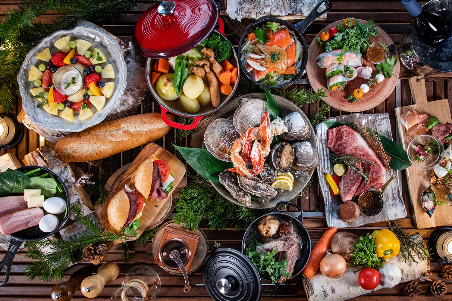 観光やアクティビティ、避暑地だけでなく、たくさんの農産物の食の宝庫としても知られるニセコ。乳製品や農産物だけでなく北海道の海の幸、山の幸を豪快にBBQスタイルでお楽しみ頂くこだわりのグランピングBBQプランをご用意しております。野趣あふれる環境の中、北の大地が育んだ美味を存分にご堪能ください。