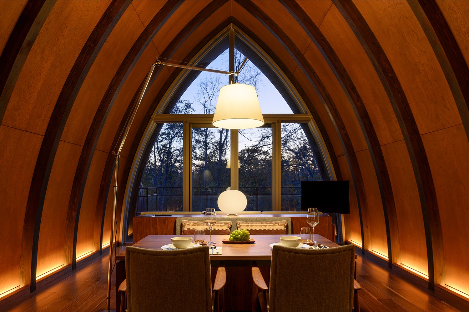 約7,000㎡の敷地にわずか6棟。ニセコの大自然を優雅に満喫頂く特徴的なデザインの造形美。全棟が1棟貸切タイプ。2階のリビングスペースから1階のベッドルームから自然を五感で感じながら、ゆったりとした至福のひとときをお過ごし頂けます。