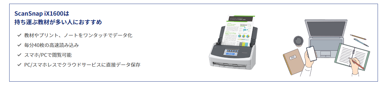 ScanSnap iX1600/SV600で教材をカンタンにデジタル化する機能