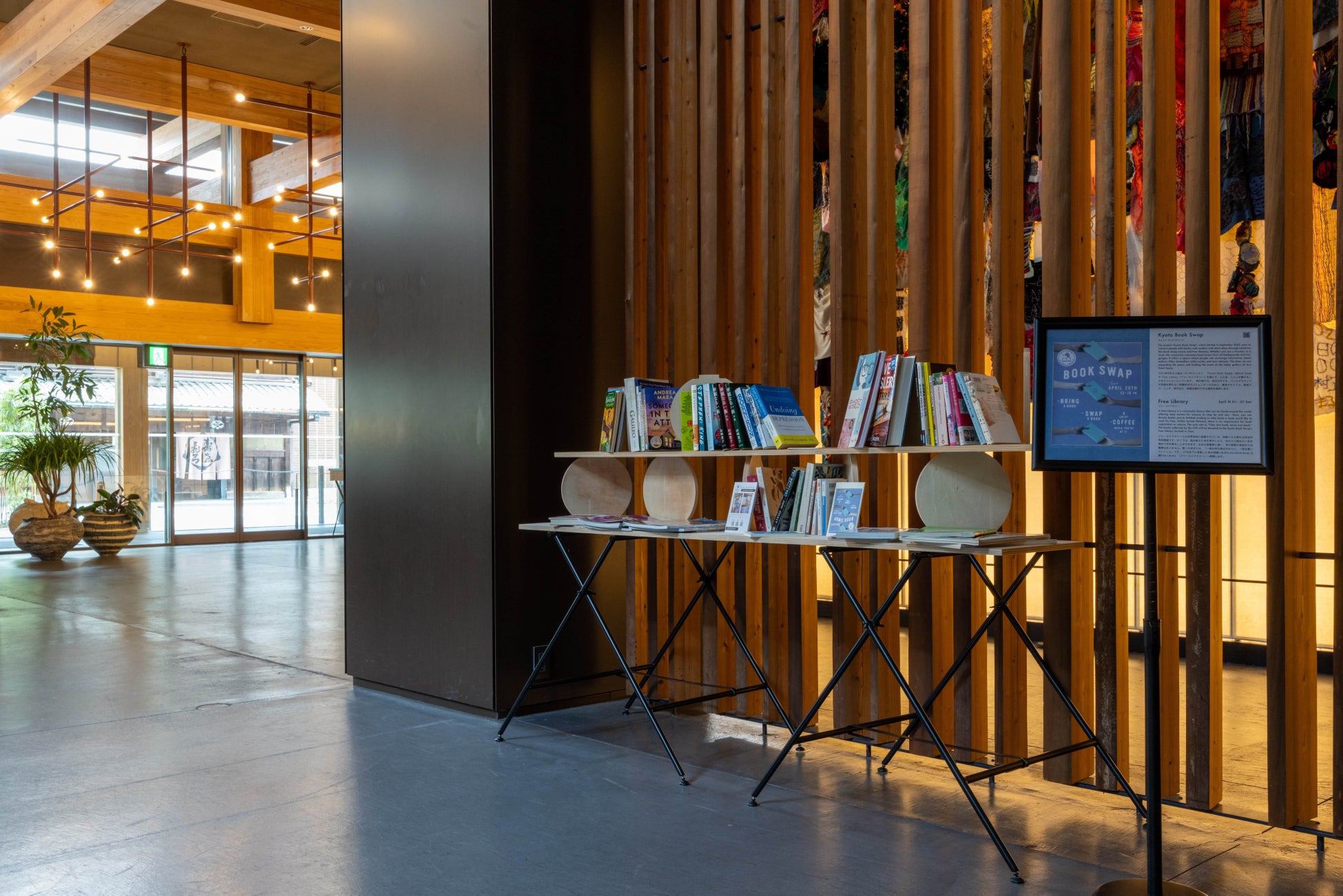 その他、本を通じて繋がる2つのイベントを開催。 7月17日(水)〜 24日(水)には『Free Library (無人図書館) 』を開催し、 7月20日(日) には『Kyoto Book Swap (本の交換会) 』を1階ギャラリーエリアにて開催いたします。KBS(Kyoto Book Swap)プロジェクトとの共催により、旅行者も地元の方も、バックグラウンドや言語を問わず、読書をきっかけに交流できる場をご提供します。交換用の本を持参のうえ、ぜひお気軽にお立ち寄りください。