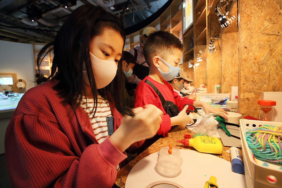 パナソニック オペレーショナルエクセレンス株式会社が運営するAkeruE(アケルエ)は、観る、つくる、伝える体験を通してクリエイティブな力を育む場です。子どもたちの知的好奇心と「ひらめき力(ギリシャ語︓Eureka)を育む場として“学び”と“モノ・コトづくり”の双方を体験できる施設です。展示作品の中では、知性を育む科学館の要素と、感性を育む美術館の要素を兼ね備えた学びを提供するとともに、モノ・コトづくりに取り組めるスペースやワークショップを展開し、子どもたちのアイデアを形にする機会を設けています。