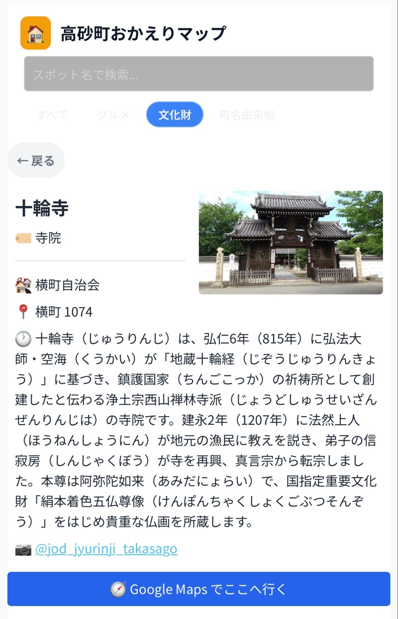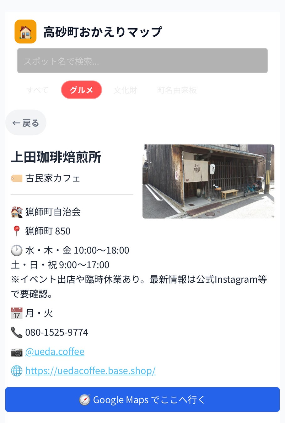 「高砂町おかえりマップ」は、そうした地域の魅力を伝えると同時に、地域の現状を見つめ直すきっかけにもなるものです。紙版とデジタル版を組み合わせながら、地域の皆さまとともに記録し、更新し、育てていける基盤にしていきたいと考えています。