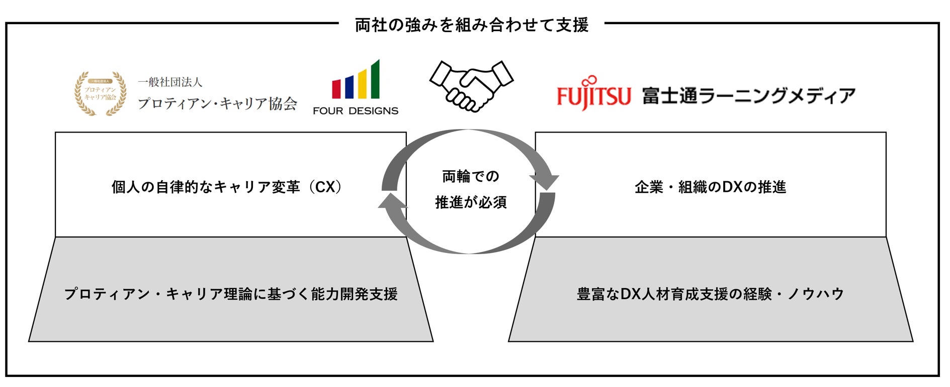 キャリア変革(CX)と組織のDXを両輪で支援するため富士通ラーニングメディアと業務提携