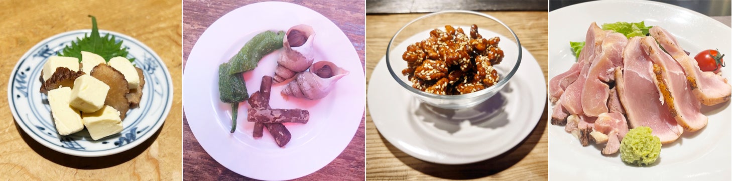 バイ貝煮 ゴボウ唐揚げ 甘長唐辛子フリット盛り合わせ |