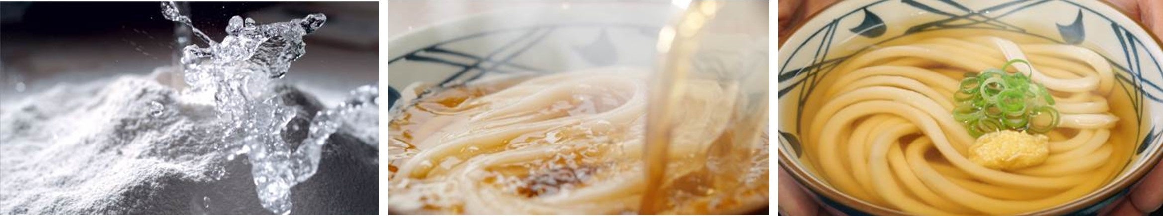 「おいしいうどん」は、徹底的に鮮度にこだわりぬいた「生きている」状態で提供されて初めて実現できる、と丸亀製麺は信じています。丸亀製麺がお届けするうどんは、国内 800 を超えるすべての店で一軒、一軒、手間を惜しまず、毎日、100%国産の小麦粉から打っています。打ち立てのうどんにこだわり、その場で切って、茹でて、作りたてをお客さまに提供しているからこそ、もちもちでおいしい独自の“丸亀食感”をお届けできています。