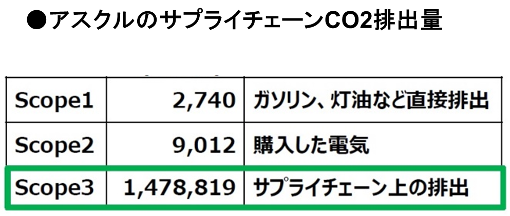 アスクルにおけるCO2排出量は、全体の99%がScope3であり、その中でも仕入商品によるものが75%と大部分を占めているのが現状です。そこで商品のCO2排出量に注目し、まずはアスクル事業で取り扱うPB商品のCO2排出量算定から開始することとしました。商品のCO2排出量を見える化することにより、アスクルとサプライヤーは各商品のCO2排出量の削減に向けた具体的な検討につながり、お客様には環境配慮商品を選定する際のサポートになります。