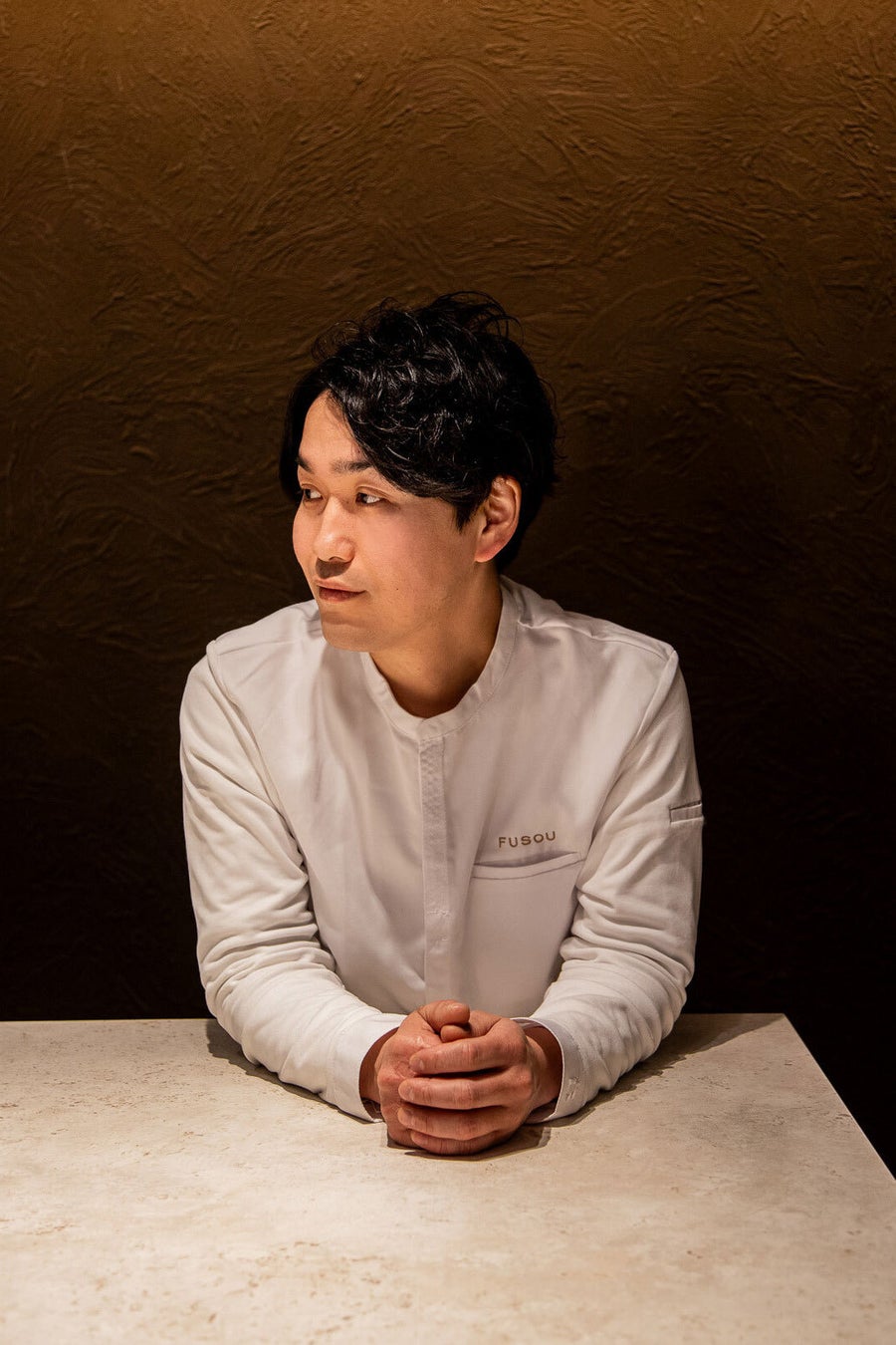 1990年⽣まれ。調理専⾨学校卒業後、当時ミシュラン2つ星の代官⼭リストランテASOにて経験を積む。熟成⾁の名店中勢以内店を経て、2018年よりミシュラン2つ星・Worldʼs 50 Best Restaurants常連NARISAWAにてBEES BAR by NARISAWAの⽴ち上げに関わる。2020年より⻁ノ⾨ヒルズの8席限定のアニバーサリーレストラン「unis」の開業時スーシェフに就任。今春、渋谷に待望の旗艦店「FUSOU」をオープン。