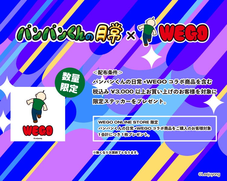 株式会社ウィゴー(本社:東京都港区芝浦 代表取締役社長:園田恭輔) では、韓国でZ世代を中心に人気爆発中の超人気キャラクター「パンパンくんの日常」とのコラボレーションアイテムを2024年7月25日(木)より、WEGO 原宿本店、WEGO 心斎橋店、WEGO ONLINE STOREの3店舗にて販売開始致します。