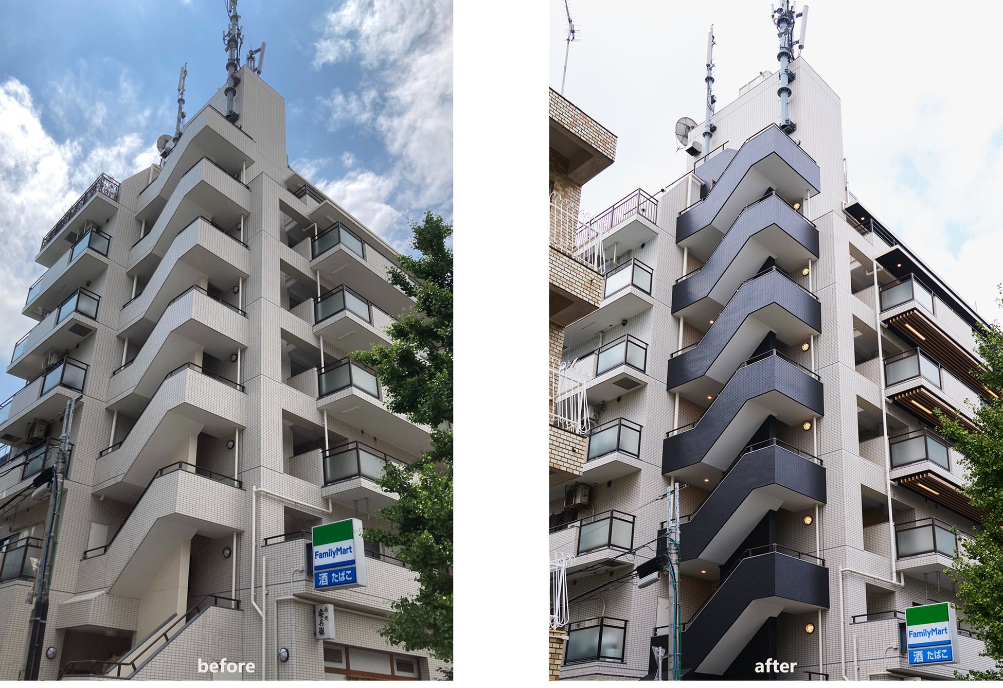 リノベーションマンション「Belleviage Akebonobashi」、外観をリニューアル
