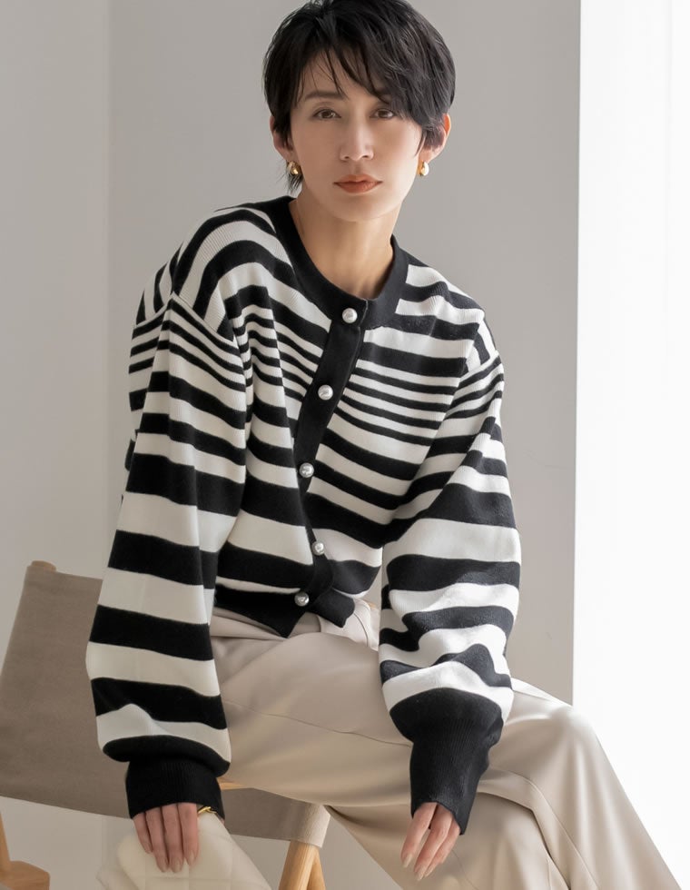 マルチボーダー×パールデザインできれいめモードな雰囲気に