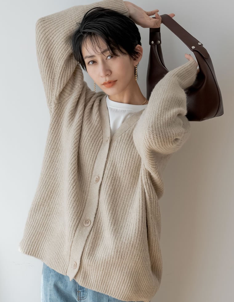 ビッグシルエットリサイクルMIXニットカラーカーディガン