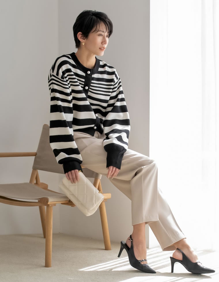 マルチボーダーデザインなので、カジュアルすぎずモードな雰囲気で着こなせるのがポイントです。